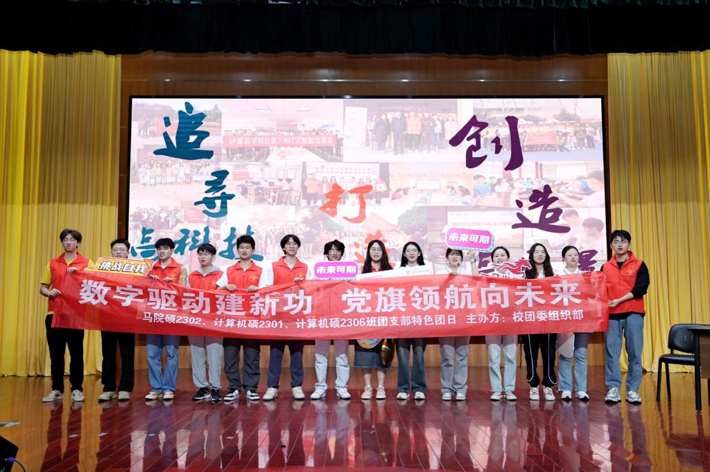 在此次校“十佳特色团日”答辩活动中,马院硕2302、计算机硕2301、计算机硕2306班团支部围绕“数字驱动建新功,党旗引领向未来”的主题,以“新质生产力”为灵感,结合特色情景剧,生动形象地展示了团支部所开展的各类特色团日活动,展现了团支部成员们团结协作,积极向上的青年面貌。