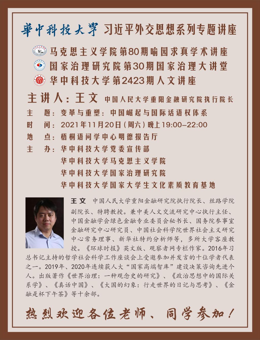 第80期喻园求真学术讲座·第30期国家治理大讲堂·第2423期人文讲座