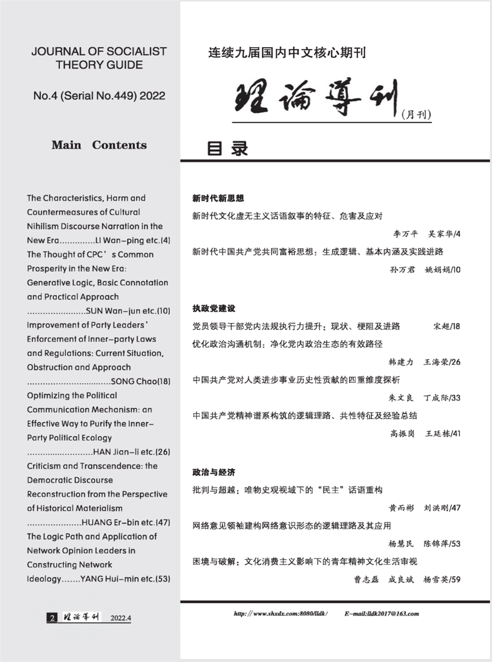 最后,该文认为应通过引导和满足青年精神文化需要、培植青年科学的文化消费观念和行为、重塑青年的精神家园三方面,破除文化消费主义思潮营造的青年精神文化生活困境,推动青年精神文化生活有序、高质、向好发展。