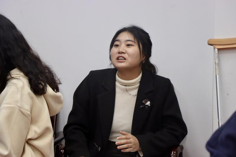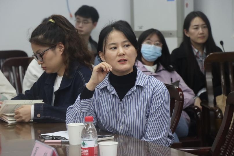 交流讨论环节中,2023级硕士生、院新闻中心干事牟倩,2022级硕士生颜瑞华和崔美娇老师就新闻写作方面的困惑与夏老师展开交流探讨。