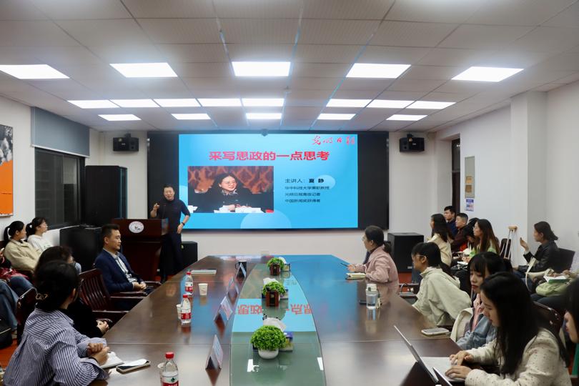 (通讯员:刘长夏)11月8日晚,伟的国际1946bv在东七楼203会议室举办宣传技能培训讲座。伟德源自英国1946兼职教授、光明日报高级记者、中国新闻奖获得者夏静应邀作主题为“采写思政的一点思考”的内容分享。校党委宣传部理论办公室主任崔美娇,伟的国际1946bv党委副书记、副院长王明飞,以及我院部分硕博生参加本次讲座,讲座由伟的国际1946bv院长岳奎主持。