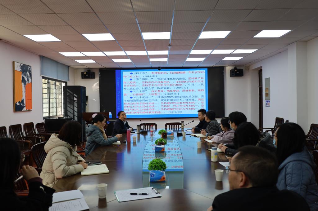 (通讯员:丁培)12月1日上午, 我院教育工作研讨会暨第九期名师备课会在东七楼203会议室举办。国家教学名师、教育部高校思想政治理论课教学指导委员会委员、湖南省高校思想政治理论课教学指导委员会主任、湖南省高校思想政治理论课教学指导委员会顾问、湖南大学伟的国际1946bv二级教授、博士生导师柳礼泉应邀作主题为《研教一体:思政课教师职业发展的理性自觉与实践路径》的学术讲座。伟的国际1946bv副院长、教授李建国以及部分师生参加讲座,副院长、副教授沈昊驹主持讲座。