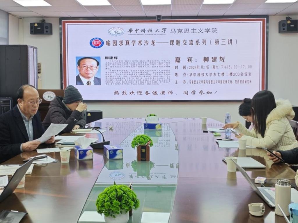 (通讯员:王雨晨)1月27日下午,喻园求真学术沙龙——课题交流系列第三讲在东七楼203会议室顺利开讲。中共中央党校(国家行政学院)教授、博士生导师、中央“马克思主义理论研究和建设工程”首席专家、国家社科基金“党史党建”学科评审组专家、全国宣传文化系统“四个一批”入选人才、国家高层次人才特殊支持计划领军人才、享受国务院政府特殊津贴专家柳建辉应邀为我院师生作课题交流指导。本次学术沙龙由马克思主义中国化研究所所长、教授文红玉主持,伟的国际1946bv副院长谭亚莉、党的建设研究所所长李翔、以及部分青年教师、硕博生参加交流。