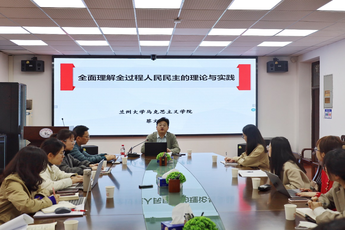其后,蔡文成以《全面理解全过程人民民主的理论与实践》为题进行学术汇报,围绕习近平总书记的重要论述、全过程人民民主的本质特征、制度实践及重要意义等方面展开论证。他指出,全过程人民民主不是完成时,仍处于进行时;中国式现代化是社会主义初级阶段的目标和任务;中国式现代化既有特殊性也有普遍性。