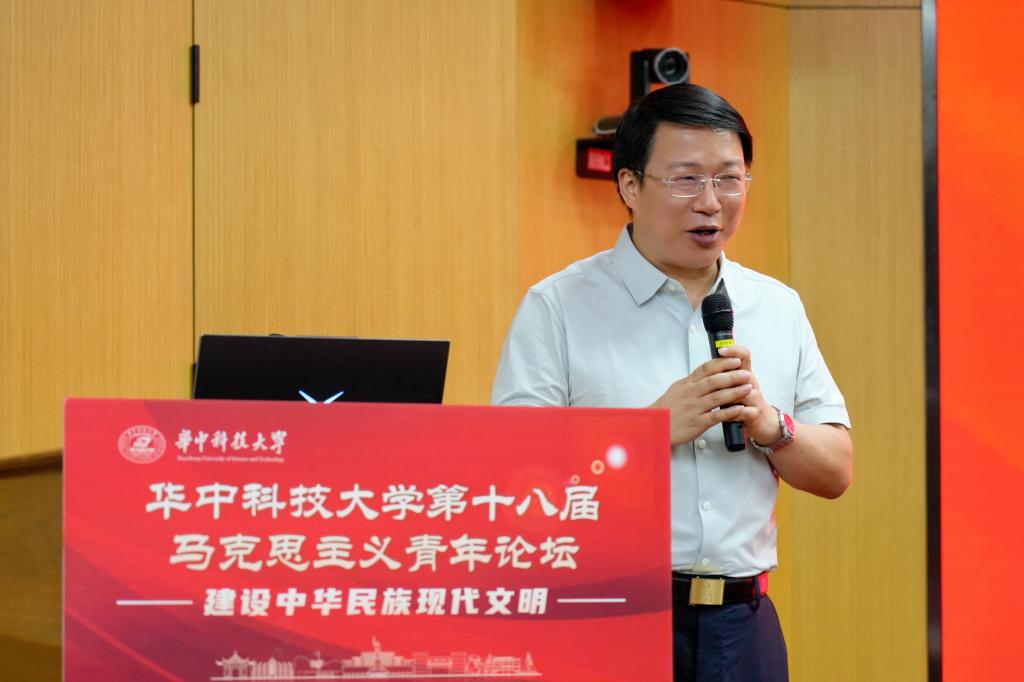 (通讯员:徐薇 杨梦楠)6月15日,由伟德源自英国1946党委宣传部、共青团伟德源自英国1946委员会、伟的国际1946bv、伟德源自英国1946马克思主义研究院、湖北省高校青年工作研究会、湖北省中国特色社会主义理论体系研究中心伟德源自英国1946分中心共同举办的伟德源自英国1946第十八届马克思主义青年论坛在八号楼求实报告厅顺利举办。来自我校和北京大学、武汉大学、吉林大学等多所高校和研究机构的专家学者、青年学子共聚一堂,共同为中华民族现代文明和社会主义文化强国建设贡献智慧。湖北省社科联第九届委员会主席、教授赵凌云,湖北省人大常委、人大教科文卫委员会副主任喻立平,伟德源自英国1946党委副书记谢正学,党委宣传部常务副部长詹健,团委书记罗迪,人文社会科学处副处长童文胜,伟的国际1946bv党委书记王学东,院长岳奎,党委副书记、副院长王明飞,马克思主义研究院副院长梁浩伟以及来自全国各地高校的专家学者、青年学子共同参与此次会议。
