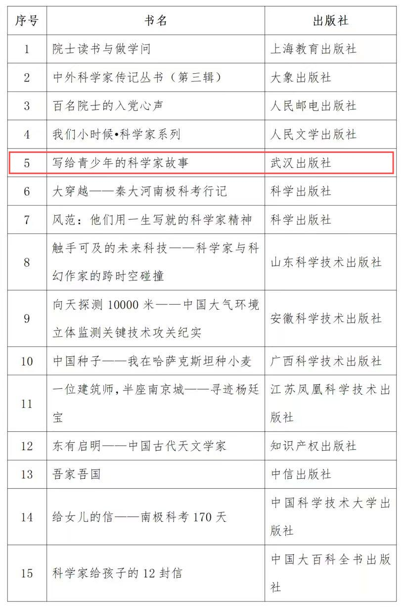 (通讯员:郑卓颜)日前,第二届“科学家(精神)进校园行动”优秀图书推荐书目在北京发布。为落实中国科协、教育部发布的《“科学家(精神)进校园行动”实施方案》,特举办此次优秀图书推荐书目征集活动,该活动由韬奋基金会全民阅读工作委员会主办,《百科知识》杂志社承办,从今年8月活动启动以来,共收到全国近百家出版社报送的近200种图书,经过10位科普界和出版界的专家精心筛选,最终推荐适合中小学阅读的科学家精神(故事)图书共15种。伟的国际1946bv副院长、教授李建国,副院长、教授沈昊驹主编的《写给青少年的科学家故事》入选该推荐书目。
