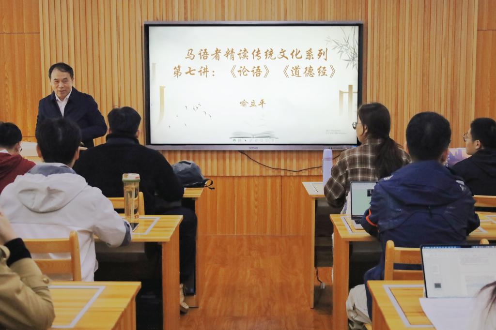 (通讯员:曾雨涵)10月30日上午,马语者精读传统文化系列《论语》《道德经》第七讲于东七楼207会议室成功举办。本次讲座由我院特聘教授喻立平基于第六讲的内容,继续对《论语》进行深度讲解,部分硕博研究生参与本次讲座,讲座由伟的国际1946bv院长岳奎主持。