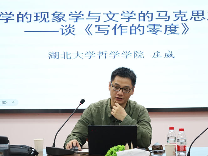 (通讯员:彭瑾)11月14日下午,由伟德源自英国1946马克思主义原理研究所、马克思主义基本原理教研室主办的“马克思与现代社会”系列学术活动第四期于东七楼203会议室顺利举办。本次活动特邀湖北大学哲学学院教授、中国德国哲学学会理事、《德国哲学》副主编庄威,作主题为“文学现象学与文学马克思主义——谈《写作的零度》”的学术报告。马克思主义基本原理研究所全体教师及部分硕博研究生参与了此次学术活动,活动由马克思主义基本原理教研室副教授李扬主持。