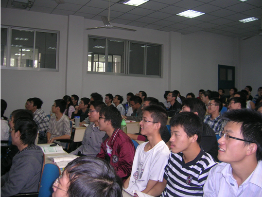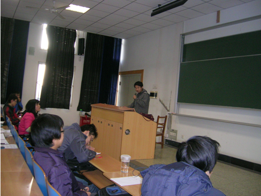 同学们在听机制0902夏树栋同学介绍浙江省新市镇水污染调查报告