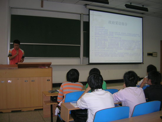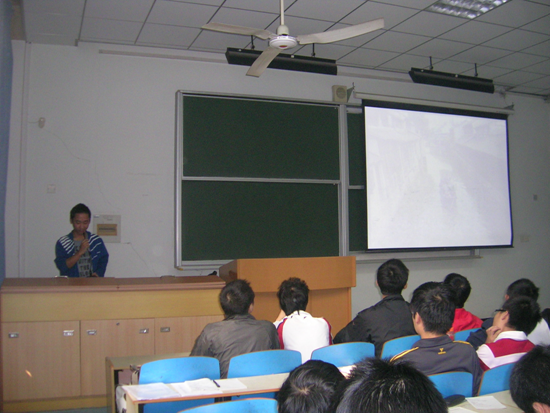 自动化0902班的邹天明同学在作“自动化与国家社会发展关系”的讲座