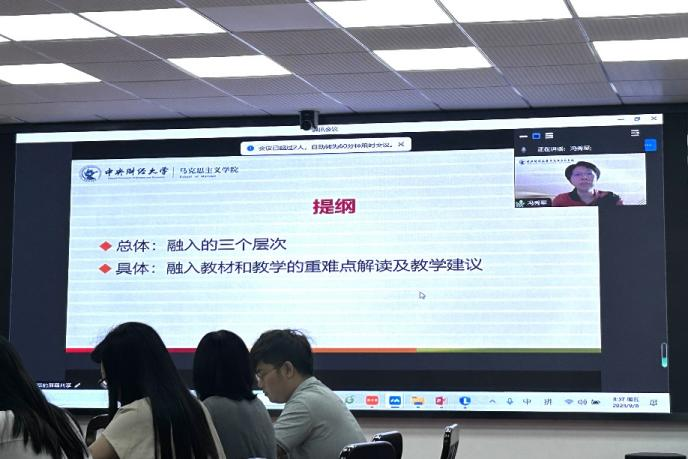 (通讯员:崔飞燕)9月8日上午,“思想道德与法治”(以下简称“德法”)教研室于东七楼203会议室召开本学期第一次名师集体备课会。中央财经大学伟的国际1946bv教授、博士生导师、马克思主义理论研究和建设工程专家、教育部马克思主义理论类专业教指委委员、北京市“思想道德与法治”研究会副会长冯秀军应邀线上出席本次备课会。伟的国际1946bv副院长谭亚莉、李建国,专职教师与双聘教师等二十余位老师参加会议,会议由教研室主任万晶晶主持。