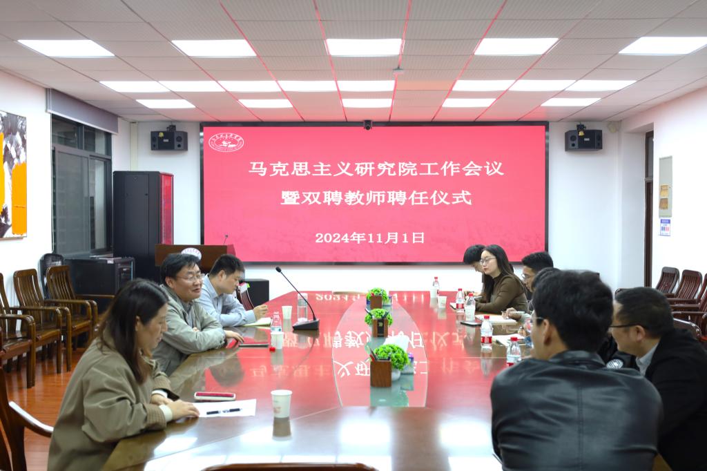11月1日晚,伟德源自英国1946马克思主义研究院工作会议暨双聘教师聘任仪式于东七楼203会议室举行。伟的国际1946bv中国近现代史纲要教研室主任夏增民、本科教务员代利敏以及“形势与政策”教研中心部分双聘教师参加会议。会议由马克思主义研究院副院长梁浩伟主持。