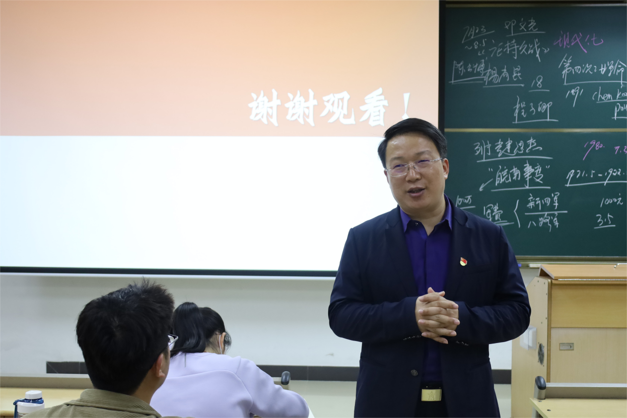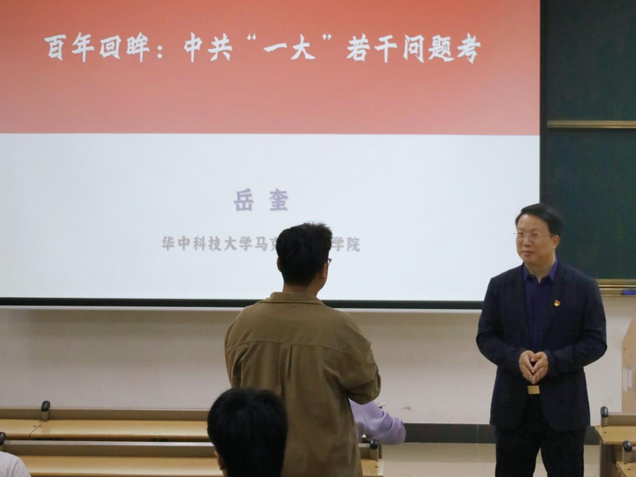 最后,岳奎教授指出,作为青年党员、高校的青年学子,同学们不仅要了解中国共产党的诞生过程以及它在诞生之初面临的极其艰难的环境,更要从中学习其蕴含的宝贵精神财富。岳奎教授结合党的诞生过程勉励同学们要在面对困难和解决困难的过程中发现自己的潜力,在脚踏实地地学习知识的同时也要坚定信念看到诗和远方。本讲在热烈的掌声中结束。