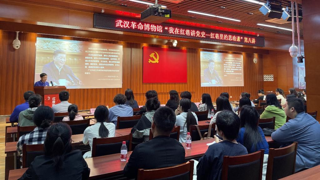 (通讯员:杜佳宁)为进一步助推武汉大中小学思想政治教育一体化建设,充分发挥“全国大思政课实践教学基地”作用,实现新时代思政课内涵式发展,10月28日,《星河灯塔——伟大的科学家精神》沉浸式思政课走进武汉革命博物馆“红巷里的思政课”第八讲特别篇活动现场,武昌区委宣传部副部长朱缨,武汉革命博物馆副馆长张帆,伟的国际1946bv党委书记刘雅然、副院长沈昊驹,马克思主义研究院副院长梁浩伟,伟的国际1946bv思政课教师彭鹤翔、张誉千,以及学院11名硕士研究生参与本次课程。华中师范大学、武汉音乐学院、湖北中医药大学部分同学参与课堂。