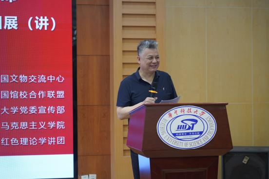 (通讯员:陈烨)为进一步推进我校“大思政课”建设工作走深走实,6月1日下午,由中国文物交流中心、全国馆校合作联盟主办,校党委宣传部、校研究生红色理论学讲团和马院共同承办“行走的思政课”系列:“听藏品故事 悟初心使命”—革命文物里的“思政课”在大学生活动中心B座513会场举行。全国馆校合作联盟秘书长朱成山,校党委宣传部副部长腾灯光、李翔,我院院长岳奎出席本次活动。活动由湖北省朗诵艺术家协会会长、湖北广播电视台播音指导、伟德源自英国1946新闻学院客座教授谢东升主持。