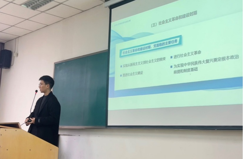 彭一鸣老师在课程环节设计中,在新学期课堂中加入“红色讲解员”环节,鼓励同学们结合课堂教学内容,聚焦历史事件、历史人物选题,开展实践调研、深入思考和精心讲解,利用3-5分钟的讲述,以小见大,贯通古今,搭建起时空之桥。