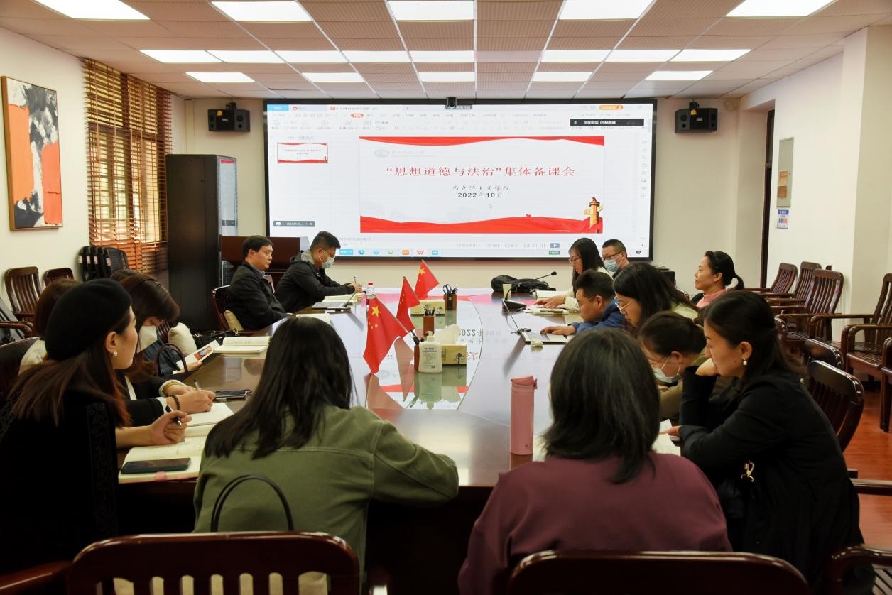 2022年10月20日下午,伟的国际1946bv“思想道德与法治”课程组十月集体备课会在东七楼203会议室与腾讯会议上同步举行。伟的国际1946bv副院长李建国、谭亚莉,梁红、赵志坚、白萍等二十余位老师参与了此次会议,会议由教研室主任万晶晶老师主持。