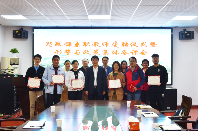 4月1日,我院思政课兼职教师受聘仪式暨2021年上半年形势与政策课程集体备课会顺利召开,院长岳奎教授为兼职教师颁发聘书并讲话,我院万晶晶副教授、阮丽萍副教授、李翔副教授,负责本科生教学管理的代利敏老师及部分兼职教师代表参加了会议。会议由形势与政策教研中心主任吕洪良主持。