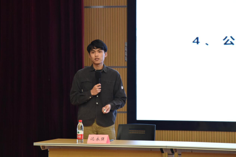 会议第二项议程:由四位学长学姐为大家带来选调经验分享。广东深圳定向选调生、外国语学院2019硕士研究生沈永强从规划准备、报名选择、笔试备考、面试备考四个方面展开。在规划准备部分,他建议同学们一方面要找到志同“道”合的队友,另一方面要学会建立自己选调日志;在报名选择方面,他提醒同学们认真阅读选调公告,按自身条件筛选,报名时妥善利用部分系统中的统计功能,帮助自己决策;在笔试备考方面,他建议同学们要熟悉每个题型与对应的解题方法,有针对性的刷题;在面试备考方面,他谈到大家如果选择报班要注重老师的资质;平时时间充足可以借助学习强国、《习近平用典》等阅读材料,时间有限情况下择取部分重点记忆。