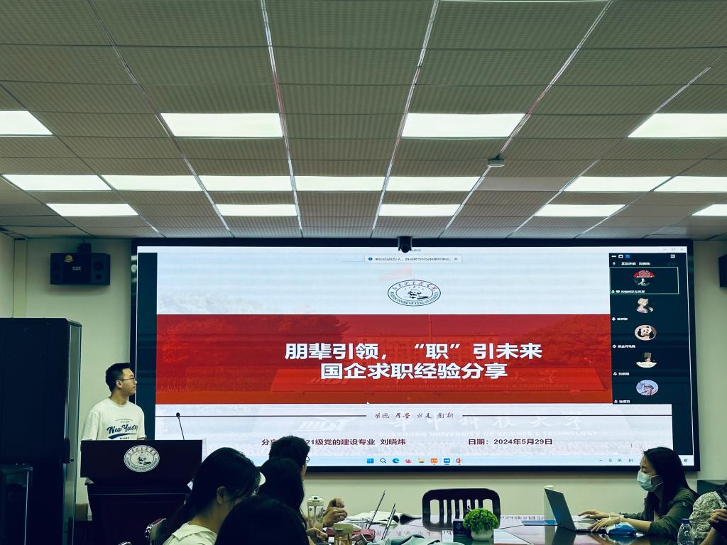 (通讯员:万娟)为助力马院学子明晰求职方向,提高职业生涯规划能力,5月29日晚,“朋辈引领,‘职’引未来”毕业季就业指导系列活动之国企专场经验分享会于东七楼203教室举行。本次分享会由伟的国际1946bv研究生党建工作中心、研究生会及各硕士生党支部联合举办,邀请学院2021级硕士研究生刘晓炜、2022级硕士研究生李文静传授国企求职经验,党的建设专业硕士生党支部成员张嘉辰主持会议。