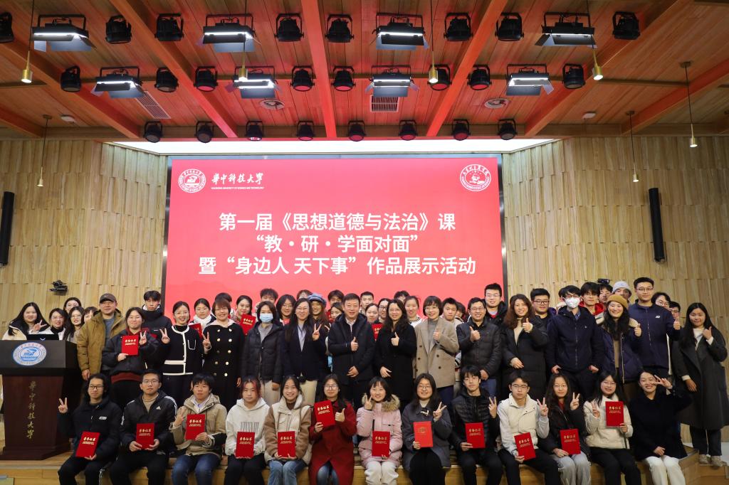 (通讯员:曾雨涵 刘宛婷)习近平总书记在全国高校思想政治工作会议上提出,思想政治工作从根本上说是做人的工作,必须围绕学生、关照学生、服务学生。为满足“05后”大学生的学习期待和发展需求,精准把握其成长规律,准确研判其思想动态,并针对性开展教学,“思想道德与法治”(以下简称“德法”)教研室于1月5日在梧桐语明德报告厅举办了第一届《思想道德与法治》课“教·研·学面对面”暨“身边人 天下事”作品展示活动,旨在学情调研的基础上进一步掌握学生思想状况,明确学习需求;引导学生合作学习,完成以“身边人 天下事”为主题的“微思政”作品进行小班研讨和现场展示;延申课堂教学空间,进一步提升学生对“思想道德与法治”课程的参与感、代入感和获得感。启明学院副院长王琳玲,党委学生工作部本科生工作办公室副主任罗珺,校团委副书记杨柳,伟的国际1946bv党委书记王学东、副院长沈昊驹,伟的国际1946bv教师夏增民、邹旭怡、代利敏,思想道德与法治课程组全体教师,校青马班党支部副书记陈单睿,校团委学生兼职副书记刘泽清,全校各学院的“德法”课学生代表,以及伟的国际1946bv研究生代表等参加活动。活动由“德法”教研室主任万晶晶主持。