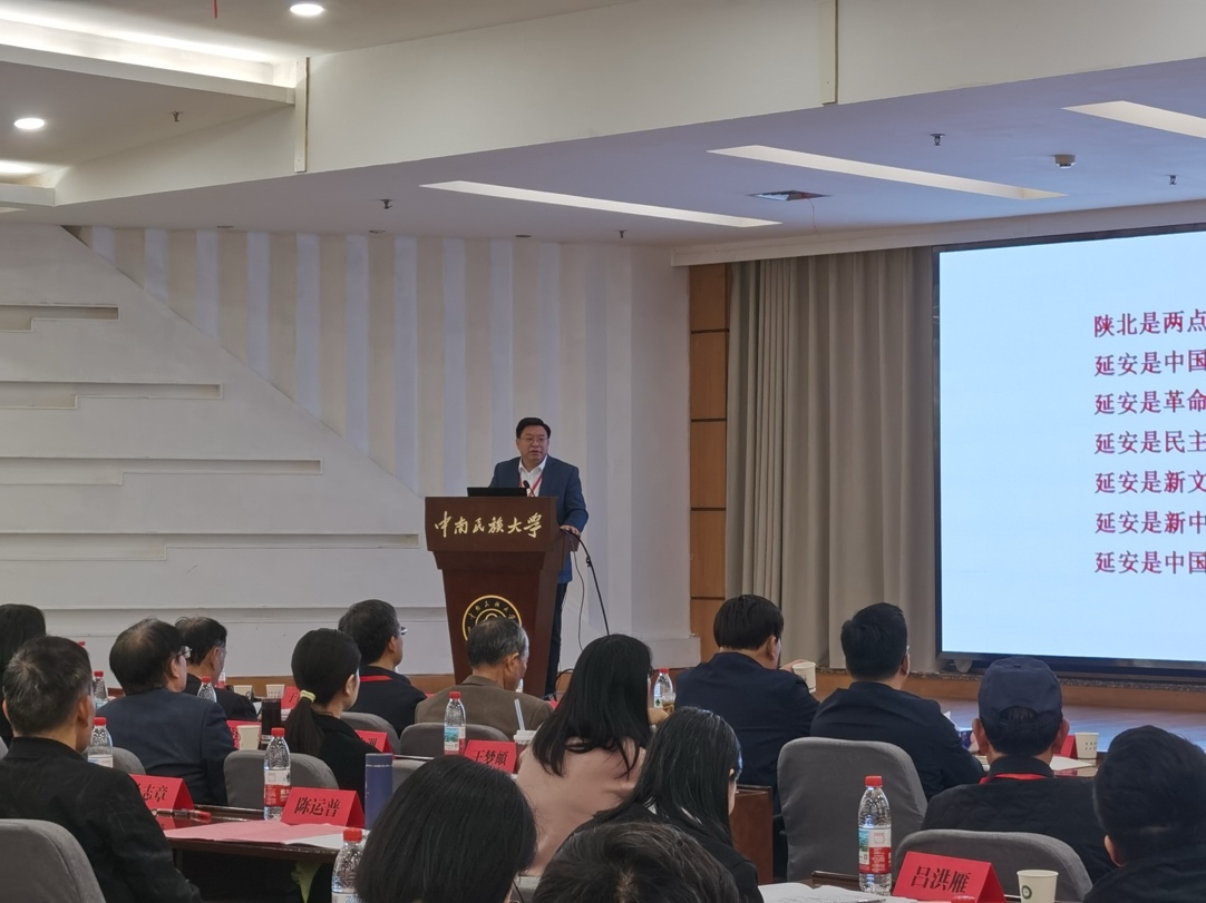 (通讯员:王译)10月19日,“湖北省延安精神研究会五届二次理事会暨弘扬大别山精神和延安精神推动湖北省支点建设理论研讨会”在中南民族大学召开。本次会议由湖北省社会科学界联合会指导,湖北省延安精神研究会主办,中南民族大学伟的国际1946bv、黄冈市延安精神研究会、英山县委县政府共同协办。中南民族大学党委书记徐业勤,英山县县委副书记唐勃,黄冈市延安精神研究会常务副会长、黄冈市史志研究中心主任江明,湖北省社科联党组书记、常务副主席、省延安精神研究会会长刘爱国出席会议并致辞。省延安精神研究会副会长、省委宣传部原巡视员问青松主持开幕式。