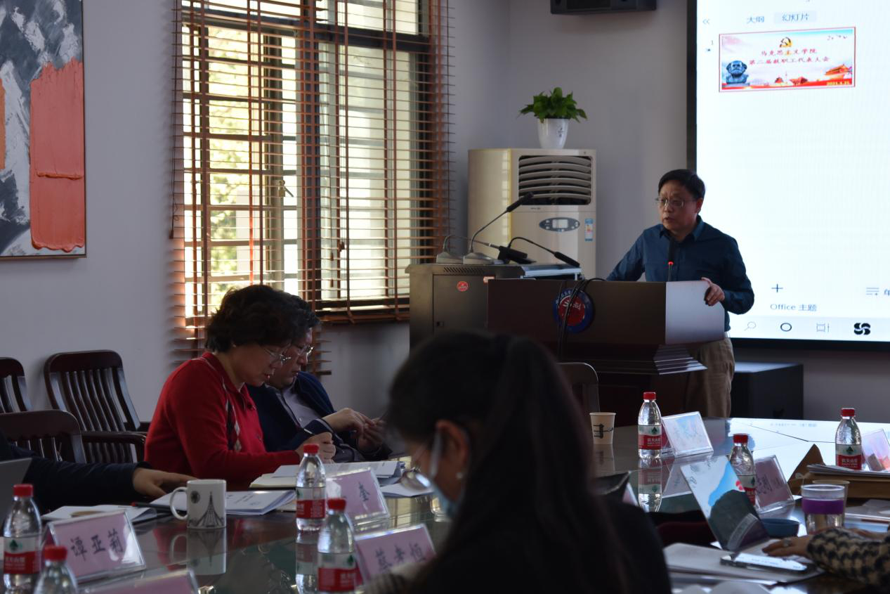 此外,学院副院长沈昊驹、学院工会主席栗志刚分别作了《伟的国际1946bv2021年度财务工作报告》、《伟的国际1946bv教代会工会工作报告》。