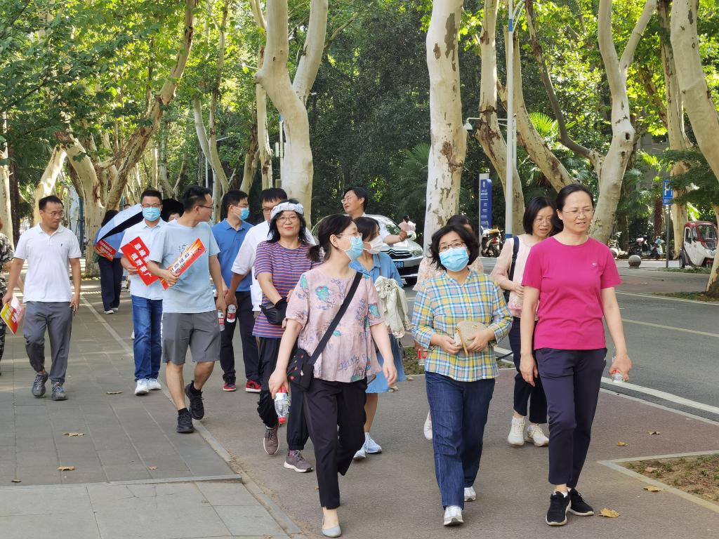 合影留念后,活动正式开始。教职工们沐浴着阳光,精神抖擞,向着喻家山的方向前行。一路上,大家呼吸着新鲜空气,欣赏着沿途风景,相互交谈着工作和生活中的趣事,享受着健步行带来的激情活力和运动魅力。