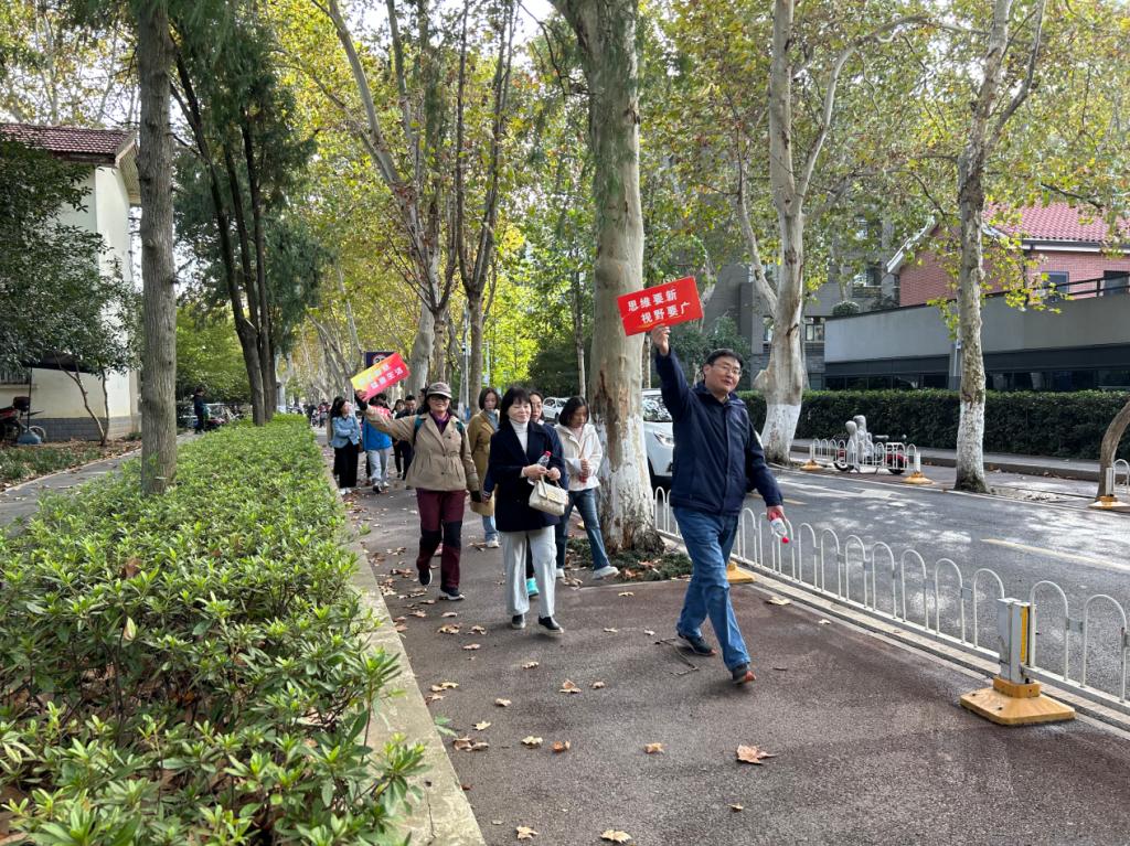 合影留念后,活动正式开始。教职工们沐浴着阳光,精神抖擞,向着喻家山的方向前行。一路上,大家呼吸着新鲜空气,欣赏着沿途风景,相互交谈着工作和生活中的趣事,享受着健步行带来的激情活力和运动魅力。