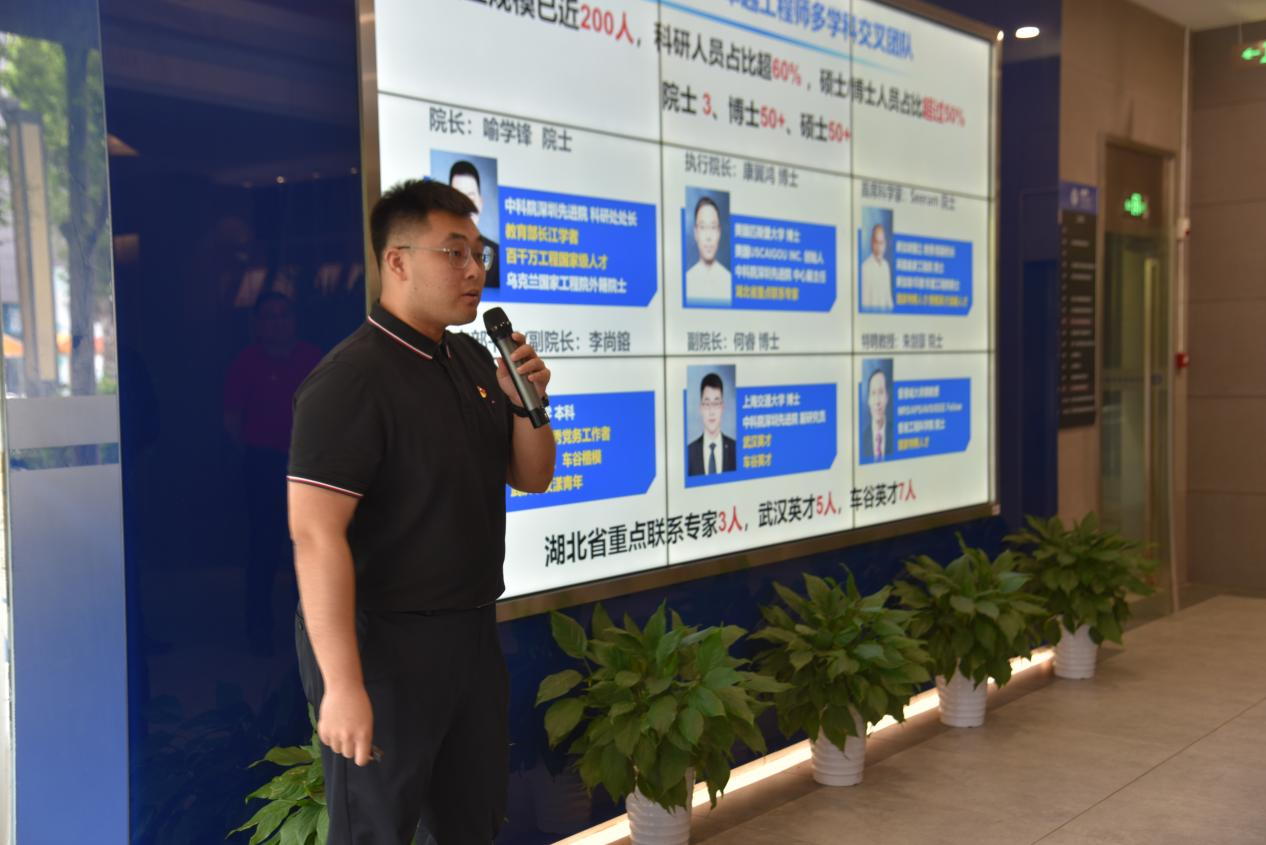 最后,武汉中科先进技术研究院副院长何睿带领双方代表一行参观调研了武汉先进院展厅,并介绍研究院发展现状、优势产业和未来前景。