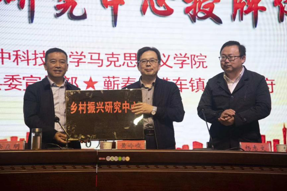 黄岭峻院长与中共蕲春县常委、宣传部部长杨志文、横车镇党委书记徐焱明签订《共建乡村振兴研究中心协议》并举行授牌仪式。