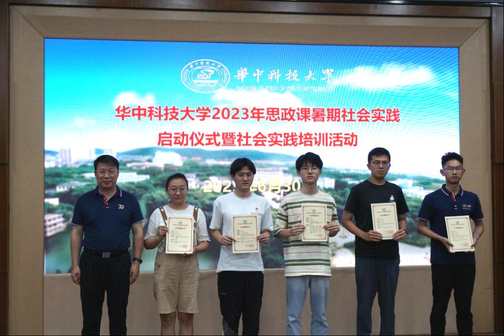 启动仪式上,岳奎为2023年思政课暑期社会实践立项团队学生代表颁发立项通知书并合影留念。