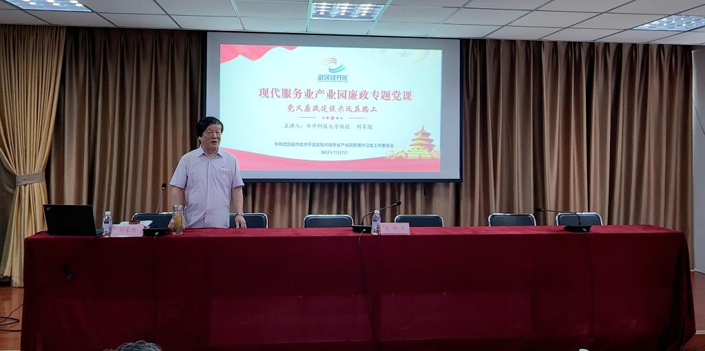 (通讯员:吕洪良)7月27日,伟德源自英国1946与武汉经开区现代服务业产业园共建的“理论热点面对面实践基地”召开二三季度系列活动,我院刘家俊教授应邀出席报告会并作题为《党风廉政建设永远在路上——再读三篇马克思主义的经典》的讲座。现代服务业产业园及中国城乡、中文在线、湖北水总、中国电建贵阳院城建设计院等企业代表共计50余人参加活动。本次报告会由武汉经开区现代服务业产业园管理办公室副主任焦文超主持。